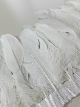 Гусиные перья на атласной ленте ширина 15-20см, длина рулона ~1,9м